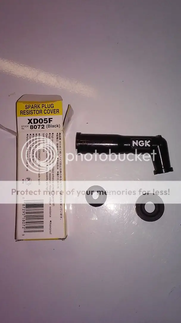 I was cleaning out my garage this weekend when I found some leftover spark plug wires and boots. They are new parts that were going to go on a friend's Honda Shadow, but he sold the bike. Unfortunately, the first thing I noticed was that these are resistor boots. 5000 ohm boots are popular for reducing EMI noise. Not so good for weak little ignition systems like on the china bike kits.