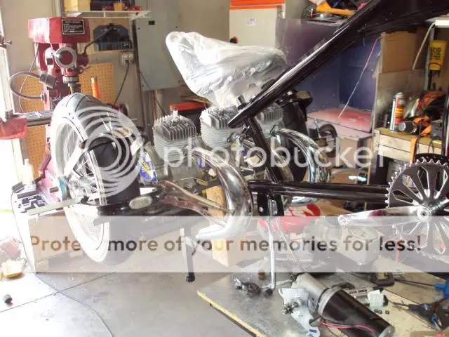 azBill or Helmutt Cycles, sent me this picture, it's a Schwinn Stingray Chopper Bicycle Custom Trike with three (3) Grubee Bicycle Engines mounted over rear Trike axle.
