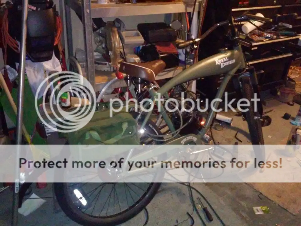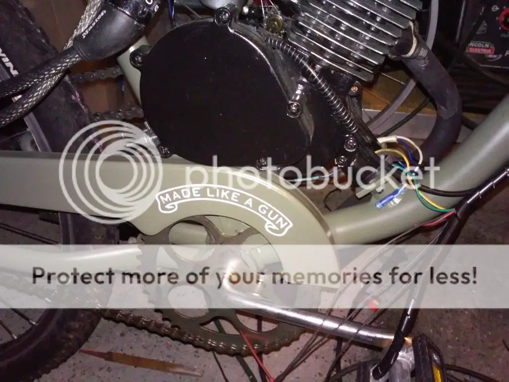 Hey guys, figured I'd share some progress I've made today. This started out as a plain jane Grubee Skyhawk frame and a conglomeration of 3 different bicycles that I've pieced together with a 48cc China girl. I'm still not yet done, but it already looks so good the way it is.