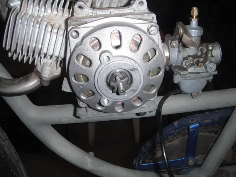 Since I started this endeavour I've learned the pocket bike guys get these little motors all wound up with pumper carbs. Which are a lot shorter than that Mikuni I put on there years ago. That'll let me move the motor back at least an inch and probably allow for some amount of offset to get the primary chain tucked in a little tighter too. What we have here is an opportunity to "Refine the Design!"