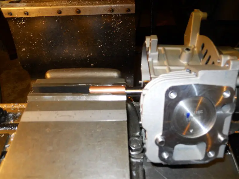 3/4" copper water tubing walls are thick and grippy. So I turned the engine crankshaft key way to face the moving jaw of the Bridgeport vise.