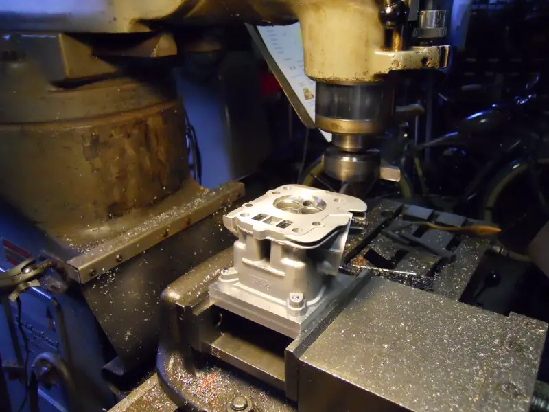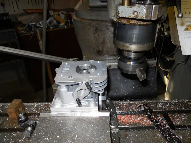 Out to the machine shop to (shred apart) disassemble top end of the 79cc Predator. Still got the two long studs to remove.