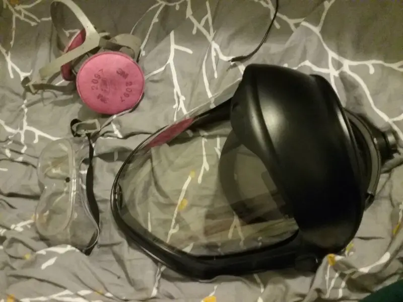 Got the Helmet and tried it with my low profile gas mask and also goggles. Bought some new Dewalt Goggles and and protective case which are nicer goggles when ordering the helmet full face and neck shield. Of-course you have to have you head with a slight downward tilt to be safest.