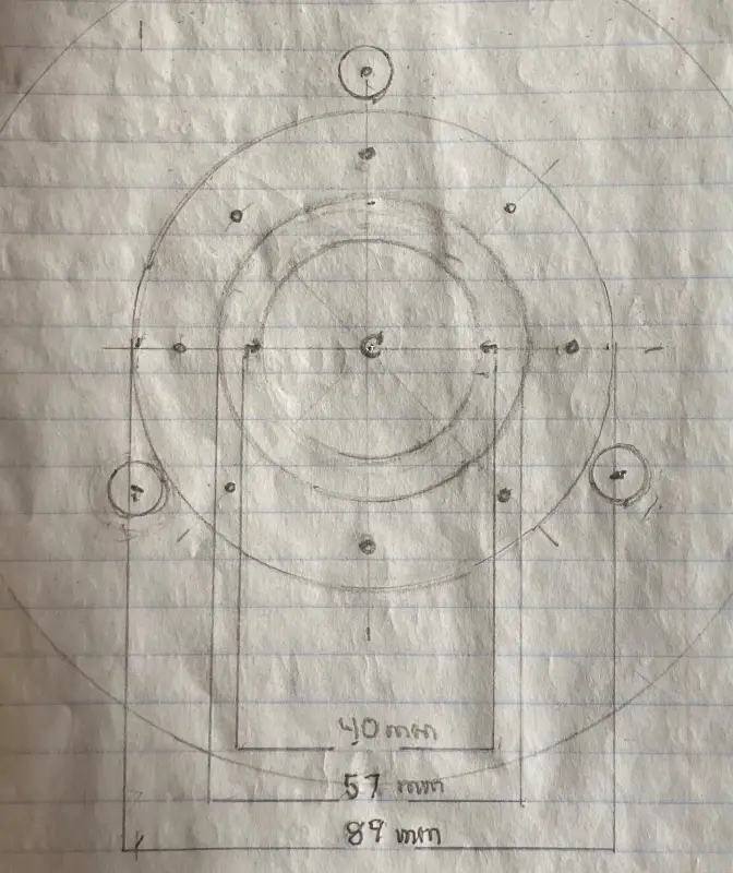 May need a slight rotation on the 3-hole positioning, or reduce bolt holes to -7