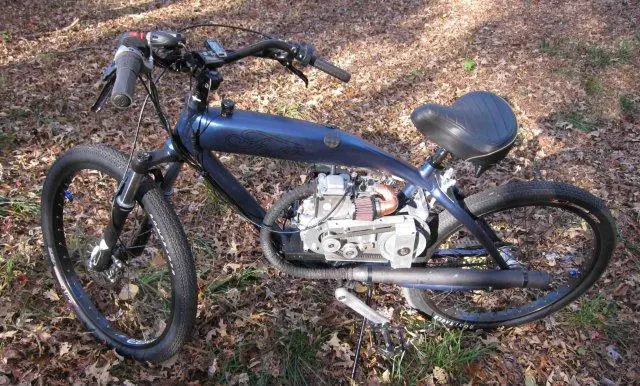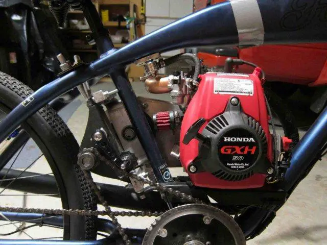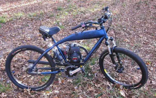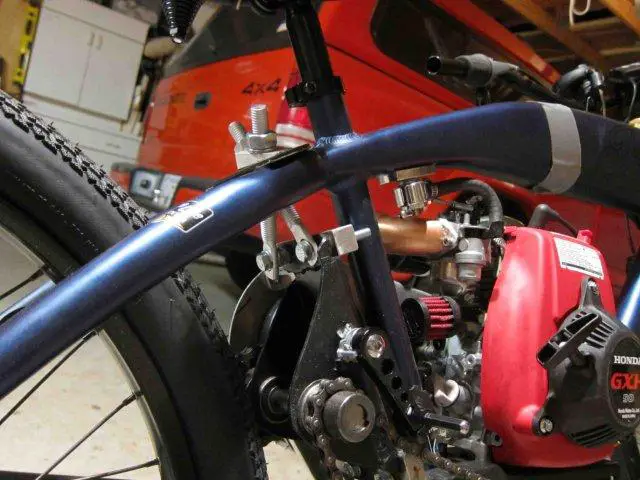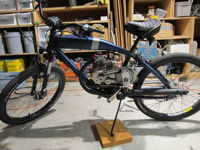 My previous setup (Hoot transmission with jackshaft kit) could do that fairly well - it had some issues early on with the carb and a replacement carb fixed things right up, but I had all of a day and a half to explore that new carb's limits before the Hoot bit the big one. Still, I could putt up hills no problem and when cruising the engine was nowhere near redline.