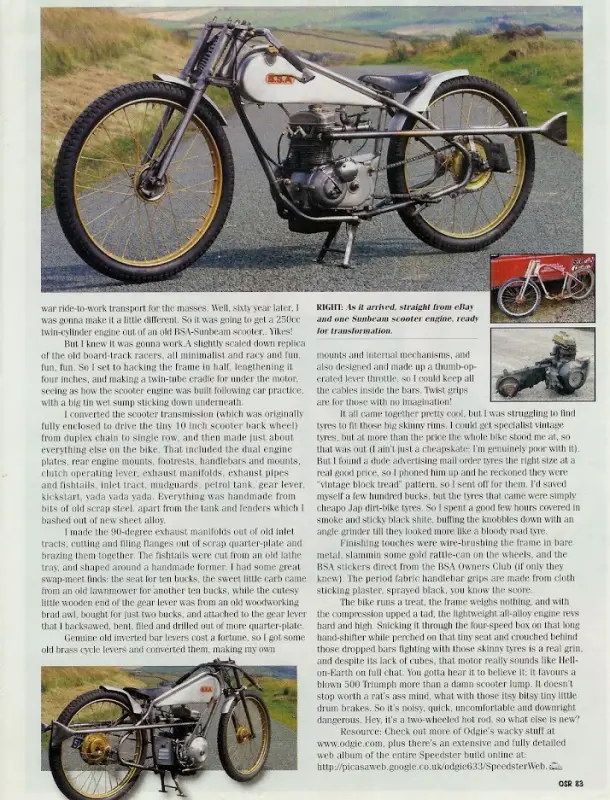You & the forum regulars know my preferences well, yet here's where I ante in. I love the bars, not just for utility either. They also look great as does the speedo. Early road bikes had large headlamps and speedo too. As to rear racks they were common in early days and have continued to this day. If you were creating a perfect replica board bike then minimalist is quite correct, for a period road rider anything goes, mix and match to hearts content with period style touches.