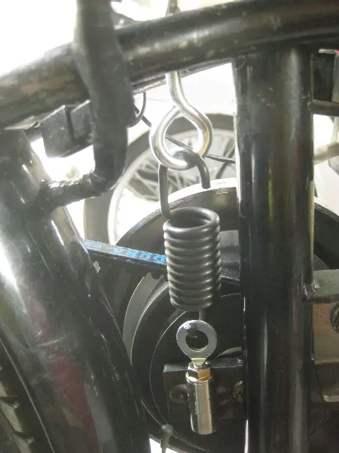 The correct length Spring and the 90* clutch arm is very important when mounting an auto clutch on a Whizzer frame.