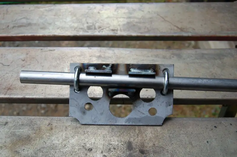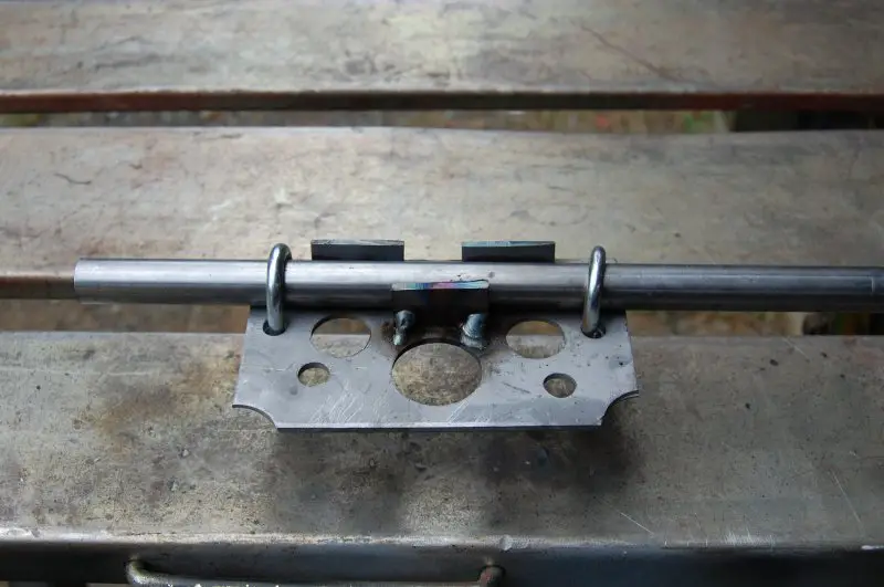 Nice work Steve, I would recommend elongating one idler hole to a slot for future adjustment. Need not be more than 3mm.This is the plate I made for the pedal chain idler. The steel rod is just to take the place of the chain stay. Welded two small pieces of bar to the plate that will sit on top of the chain stay to prevent movement.