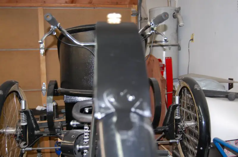 A worthy book indeed Tom. It may require me purchasing a copy as well. The tri car is finally where I want it and it is now a matter of hooking everything up and pushing it outside when the paint is fully cured on the tank which should be later this week and running it through it's paces on the work bench before it's put on the ground for the riding trials.