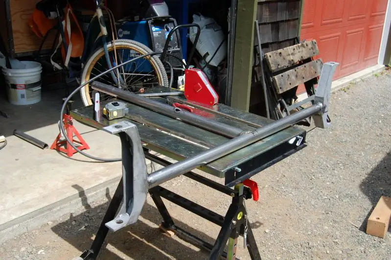 I finally have the front axle on the bike. I was working on the tube that runs from the axle back to the frame at 1am and despite measuring it at least 8 times and getting the same number I managed to cut it to short. I did the happy dance up and down the driveway when I discovered that.