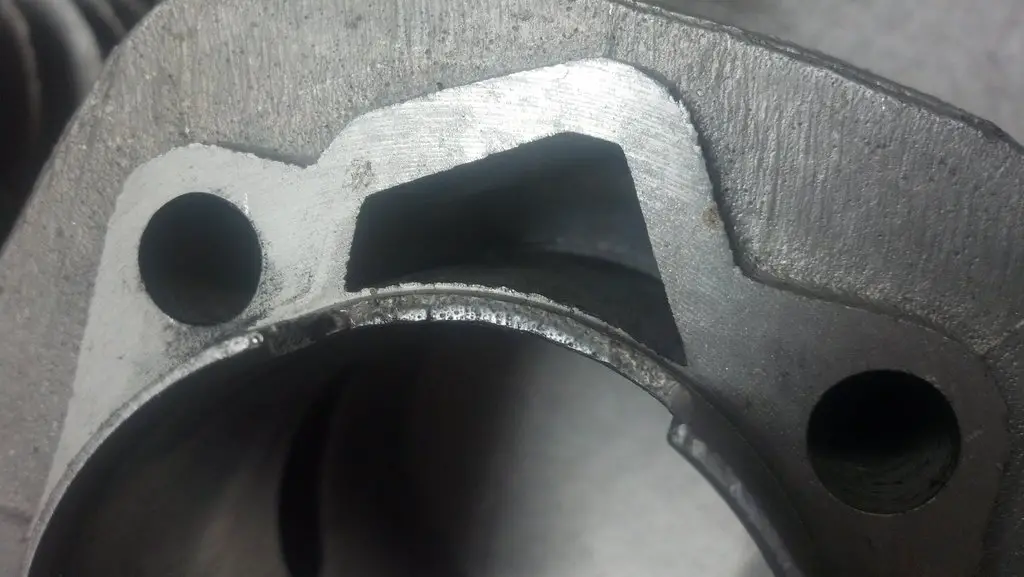 I also have a pic of a weed eater engine cylinder to show that there isn't even wall in between the T ports.