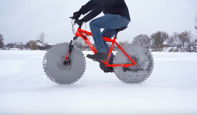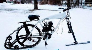 Some have gone even further adding ski to front wheel and treads to their back tire, sort of a "poor man's" one-person snowmobile concept. :)