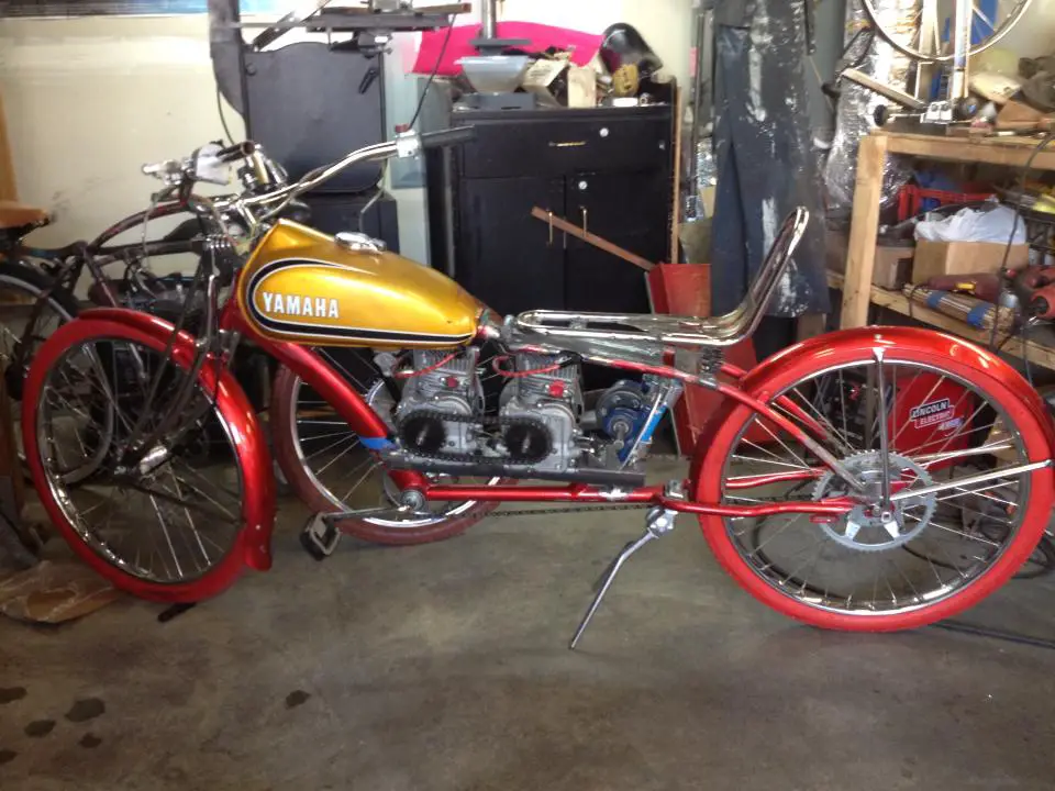 There are a ton of build pix this project in the above thread. The build has drug on far to long. I know this - starting to irritate even me. The last pix of the JS box was the last time I touched the motor assisted bicycle. It was at the shop to be cut for 2 weeks and when I got it back I was on shift 2 weeks straight with one day off and I am not done with the run yet. I have off on Wednesday December 4th. This will be the first time forward progress will have occurred on this build in a about 30 days.