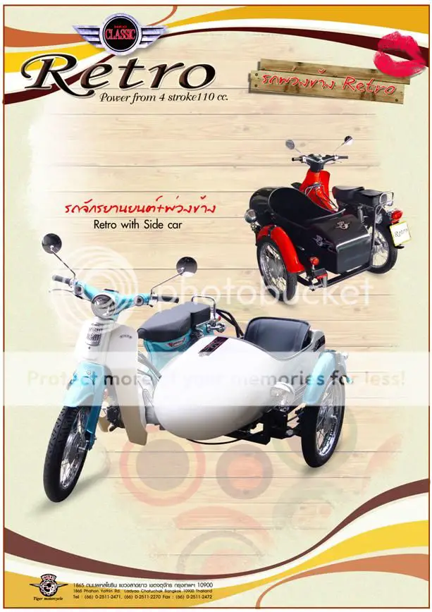 Mana, here is picture of the Tiger Motorcycle Co, Retro CT110 with sidecar.
