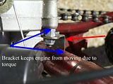 Attached is a photo of the mount I made due to the large amount of space between the motor and frame and (I thought) the need to protect the motor from vibration. It was impossible to get the hole drilled at the exact angle, so the rubber shock-mount compensates.