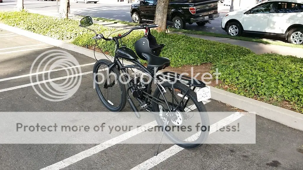 Hi everyone, I was feeling some time ago that I couldn't just slap an engine kit on a 5yr old bike and expect it be anything really special or long lasting, so I decided to strip it down to nothing but pieces for maintenance. During so I decided I should repaint it for its new transfornation. I grinded down the crank cover edge so the chain doesn't grind no more cleaned and regreased all the bike bearings and I loctited every bolt I could with the appropriate strengths and now its solid and true. Sounds and rides way better than the prototype. I was able to take a break in ride today am snapped a shot of her.