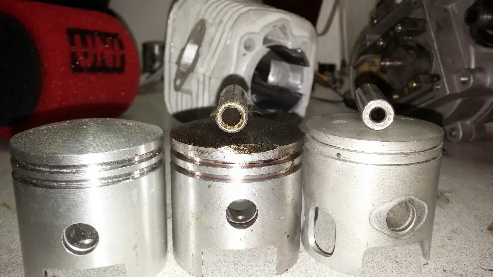 Both the pistons I got here at home are like the one on the left in your pics... I'll take some pics of my pistons in a little bit. I'm also interested in that Hoca piston since it uses the thinner rings.