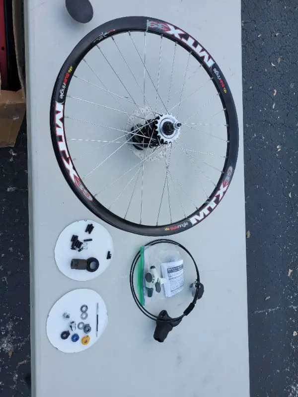 Shimano Nexus Sg-3d55 Sun Ringle MTX39 13ga Sapim spokes wheel & kit 2 new shifters. Also includes Shimano tool for removing disc rotor.