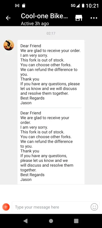 I ordered another fork #3 and now they say it's out of stock and ran the price up after I ordered and want to steer me twords another fork... So I messaged them to exchange it for a frame that's about the same money... This is the same game they tried on the first one... The second one came fast... So if I get another frame that's fine but I really want 3 of each...
