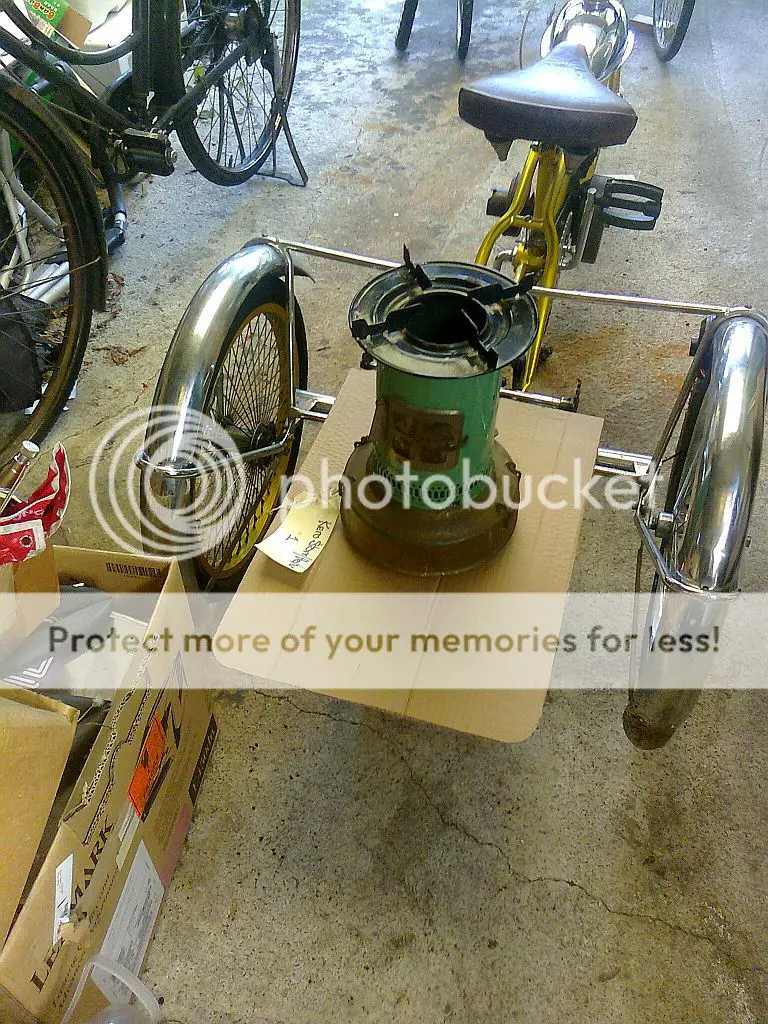My daughter had a look at my project with me and wot we've got planned out is to use the Stirling engine to run an alternator to charge batteries and the trike will actually be moved along by a 24volt electric motor. So it will be a Stirling hybrid trike and if kerosene becomes too expensive or unavailable it will be a simple matter to retrofit a firebox and run the Stirling engine on wood heat.