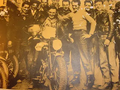 Ok, I apologize up front if I'm in the wrong area but I'm wondering if anyone out there has found a place that sells reproduction/vintage clothing that early MB riders/racers would have worn. I was watching an old video today of Board Track racing from the 1920's (or there abouts) and all the riders had really cool sweater/shirts for whatever bike they were riding...I saw Harley and Indian mostly. Anyway the style on the shirts were really cool and I'm sure could be remade by the right artist. I could also see this being a huge hit among bicycle, bike, MB and others enthusiasts. I tried looking for these items today on ebay and search engines to no luck. Anyway who here wouldn't want a cool sweater/shirt/jacket like that for when your riding your vintage MB?