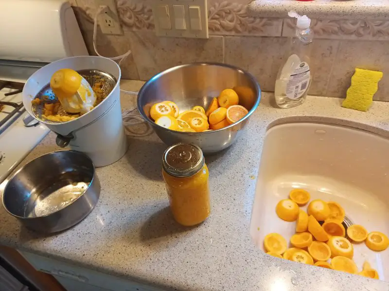 Orange juice was made by most of the oranges. Sure wish I had a whole grove of orange trees. I think orange juice fresh squeezed can alter state of mind, could be a sugar rush though as maybe 1/2 hr later same old?