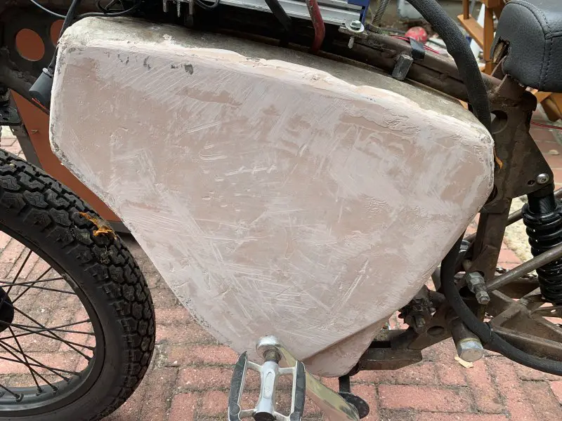 Got started on the bondo work. First time. I think I caked it on there way too heavy. Doing the time with a rasp is slow but mildly rewarding.