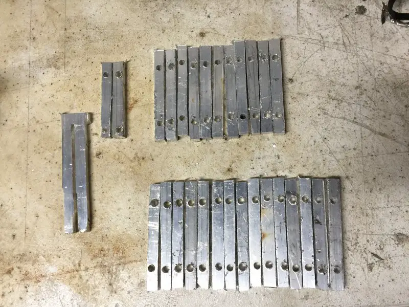 Later I had a buddy come and help deburr the parts. They needed a chamfer on both sides and about 10 seconds each to clean the burrs on a mounted angle grinder. I cut all the material I got, and ended up making around 150 pieces.