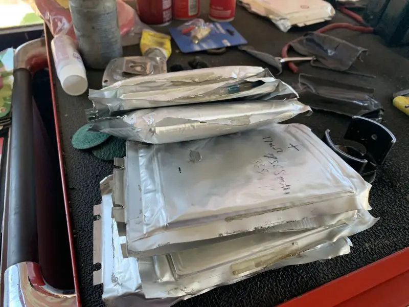 I opened it up and they were in different places. These cells did not catch fire or explode or even all rupture. The bad ones just puffed up. I got one or two that did probably with smoke that came out at the time. Reconfigured the pack as two blocks of 14s3p and 3s3p to buy new cells and add them to the smaller block, or ground.