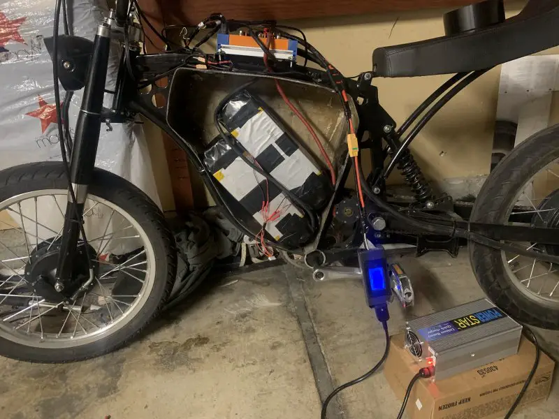 Well it’s official. I have no more range anxiety. Today I Hauled for about 8 miles straight and only went down 5 volts. Hauling range 15mi minimum, at 65mph minimum. My range is measured in battery voltage (potential). 84v full and 64v empty. I decided this one I will not take down less than 69v to leave ~5v for sag. Riding normally around the speed limit aka Not Hauling As$ I recorded a 2v drop over approx 8 miles. So to estimate I believe I can achieve 50 miles range minimum, Not Hauling. Going very slow like when I am talking on the phone thru headphones and creeping up on pedestrians with nice legs, I think I can top 80 miles however we will never find out, as I am not the guy that does range tests at 20mph without opening it up once in 3 minutes. Happy with the result. Finished it up, re-routed my charge plug to an xt90 under the seat, put the tank back on, and washed it. Also removed the ammeter attached to the end of my charge cable. It would get hot due to the skinny wires and was probably robbing some charge speed, and the display was not really needed for charging.